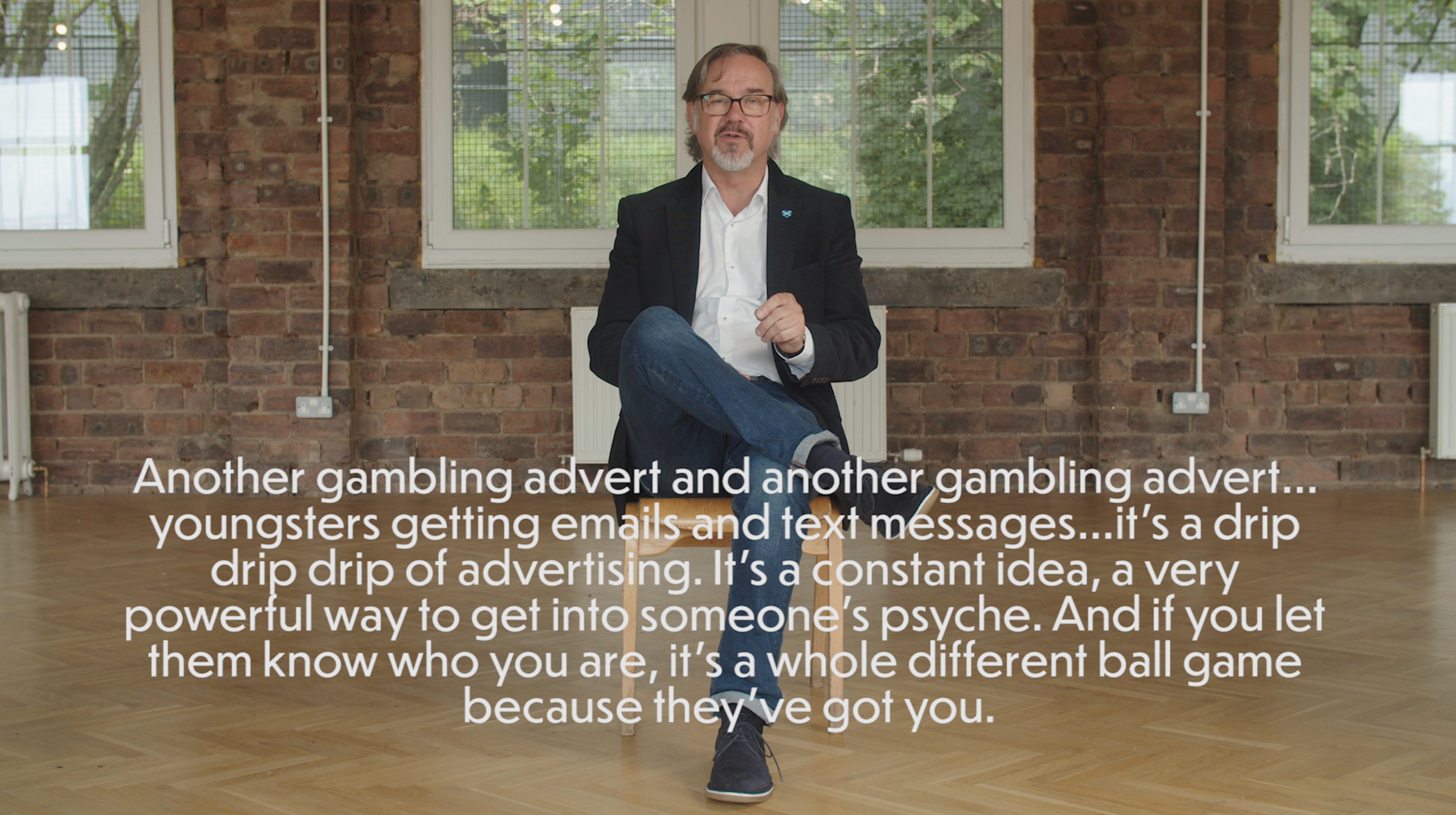 Fittingly, the last drama sequence features Martin’s own story. The scene was shot in the same location where Professor Gerda Reith and the Alliance’s Will Griffiths (the driver of the Scotland Reducing Gambling Harm initiative) made their contributions. It feels like ages ago! It was Summer last year too when MP Ronnie Cowan made his contribution. Kelly Field and John Myers travelled up from Merseyside to tell their stories along with Tony Franklin from Buckinghamshire.